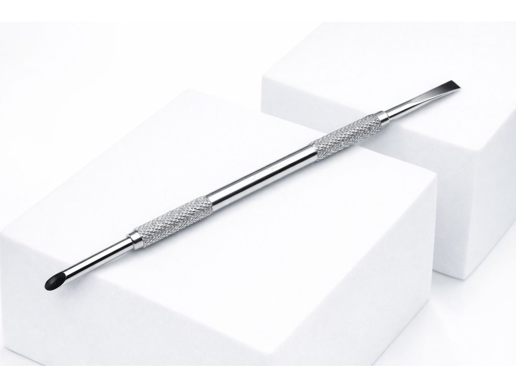 - dvě strany pusheru: k zatlačení kůžičky tvar pomerančového dřívka a ostrá zkosená část k seškrábnutí z nehtu