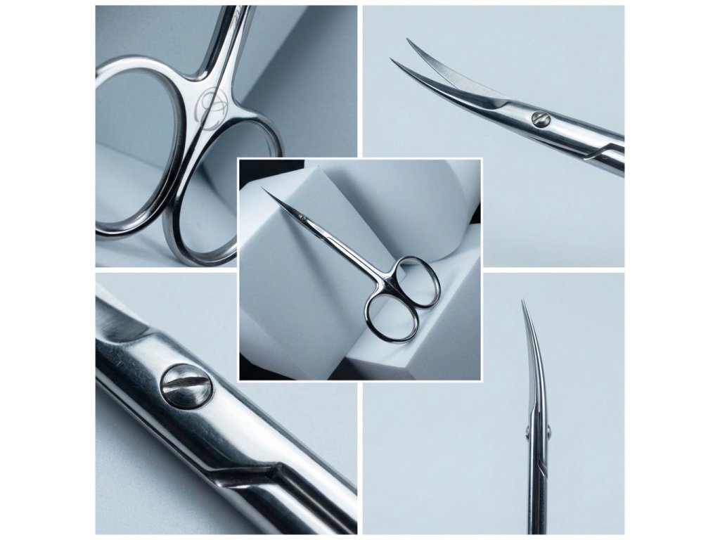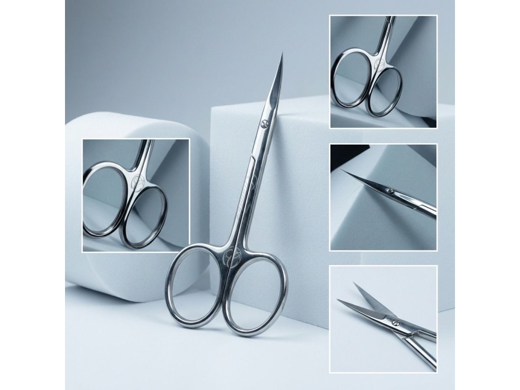 Nůžky mají lehce zahnuté ostří, pro lepší přístup. Extra ostré čepele.