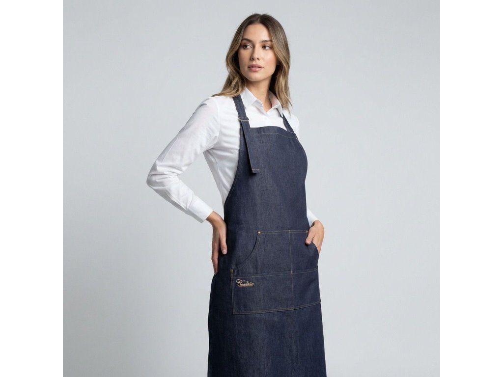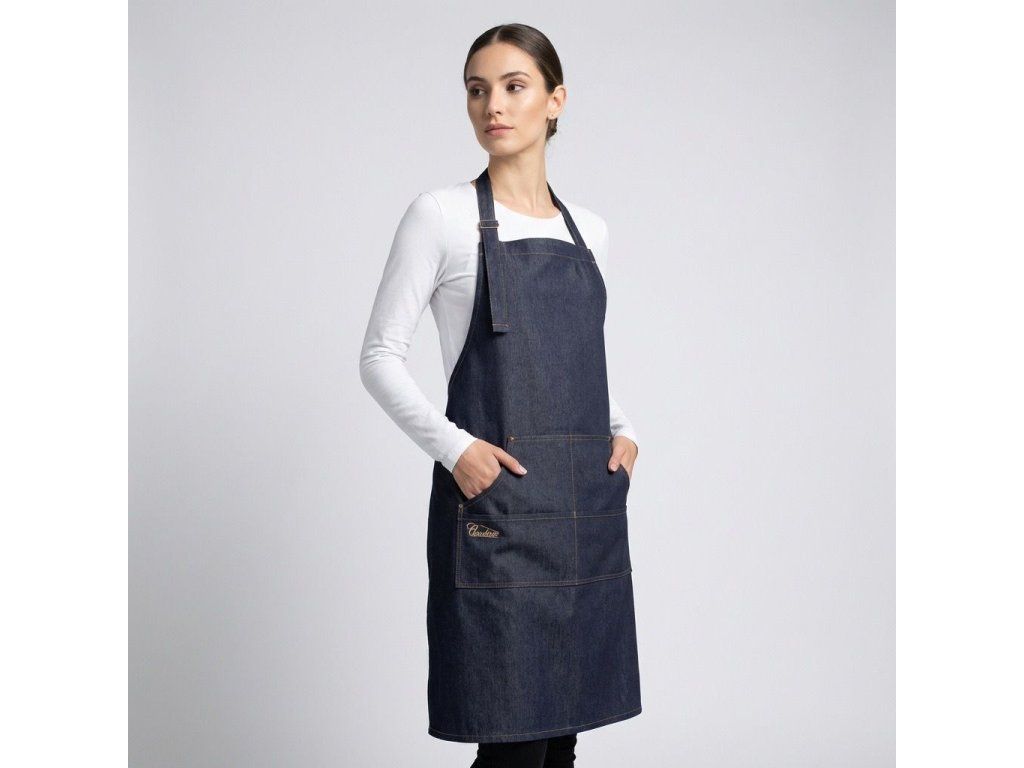 Zástěry Premium Denim vysoké kvality s logem na kapse.